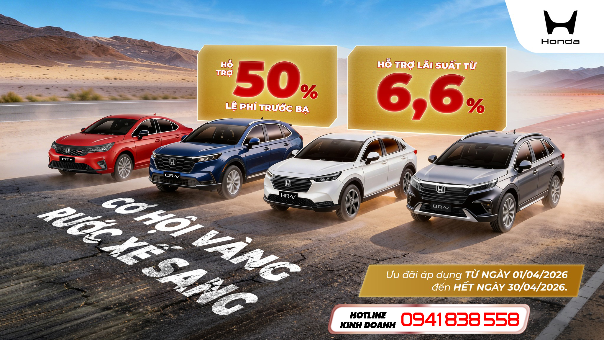 - Tặng 50% Lệ phí trước bạ khi mua City, CR-V L, BR-V L/G, HR-V L/G