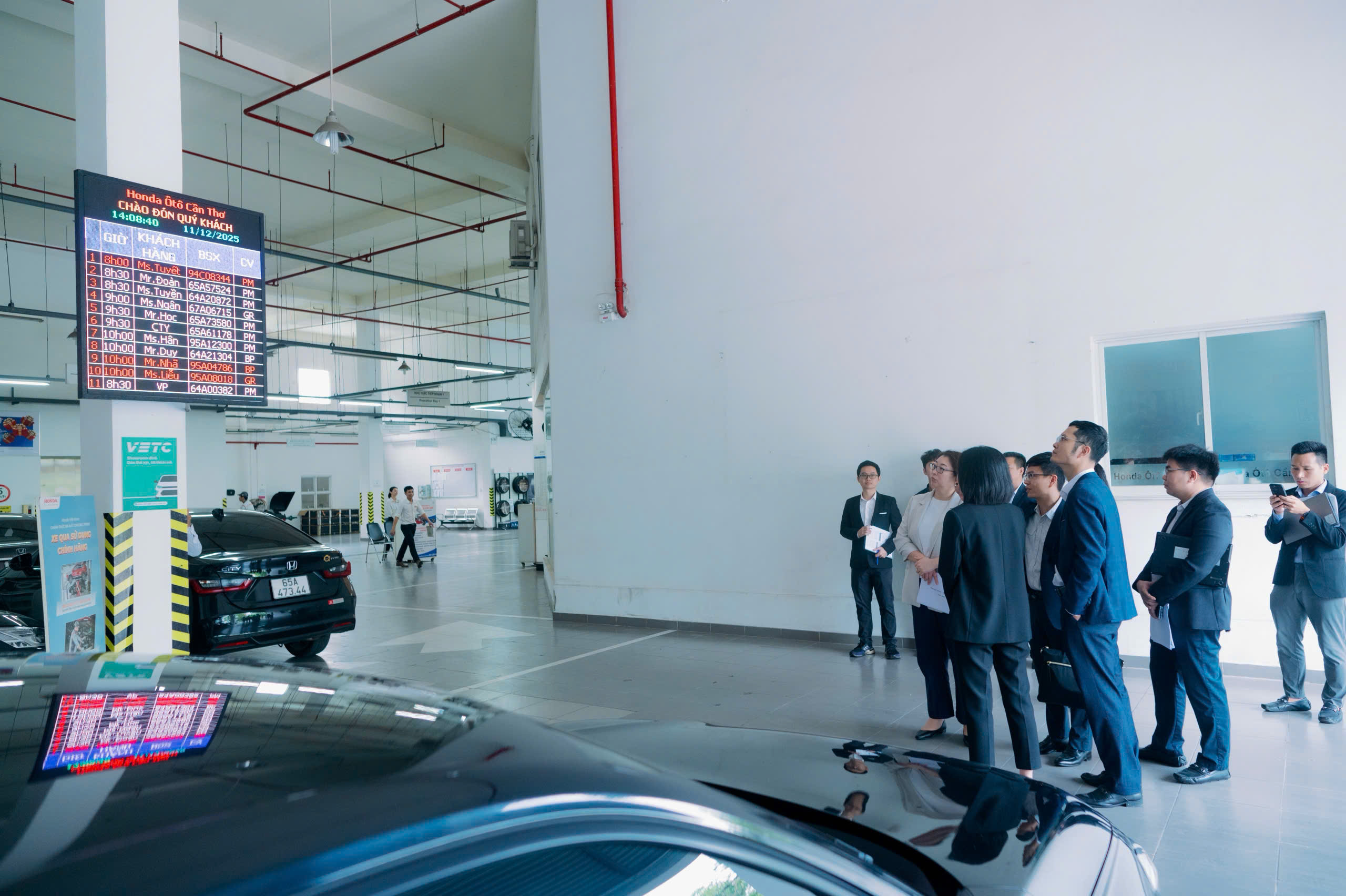 Trong chuyến ghé thăm, phái đoàn đã tham quan toàn bộ khu vực showroom trưng bày, tìm hiểu hoạt động bán hàng, trải nghiệm không gian tiếp đón khách hàng theo tiêu chuẩn Honda. Bên cạnh đó, đoàn cũng dành thời gian khảo sát khu vực xưởng dịch vụ, lắng nghe những chia sẻ thực tế về quy trình, chất lượng phục vụ và hiệu quả vận hành của đại lý.