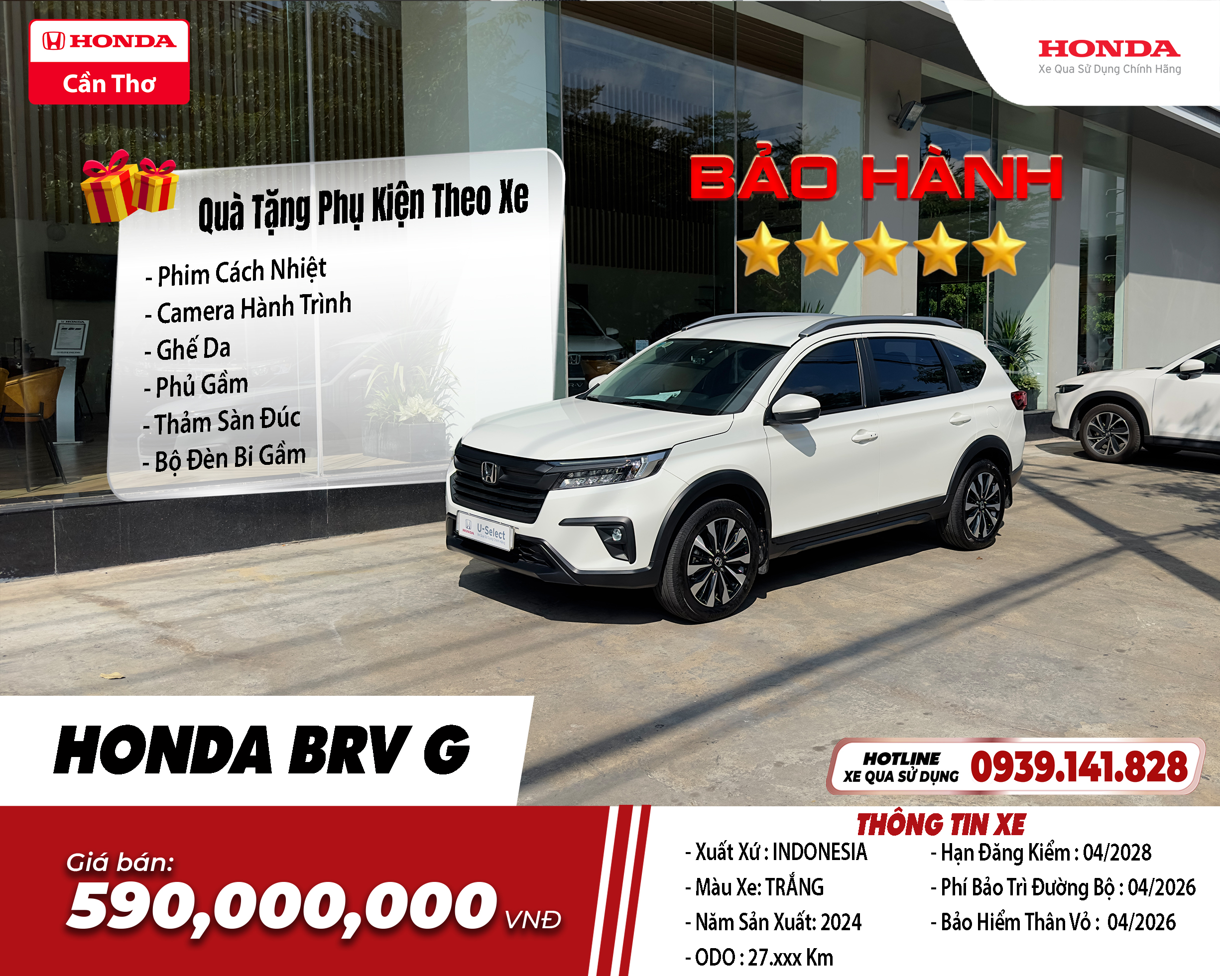 HONDA BRV G MÀU TRẮNG NĂM SẢN XUẤT 2024